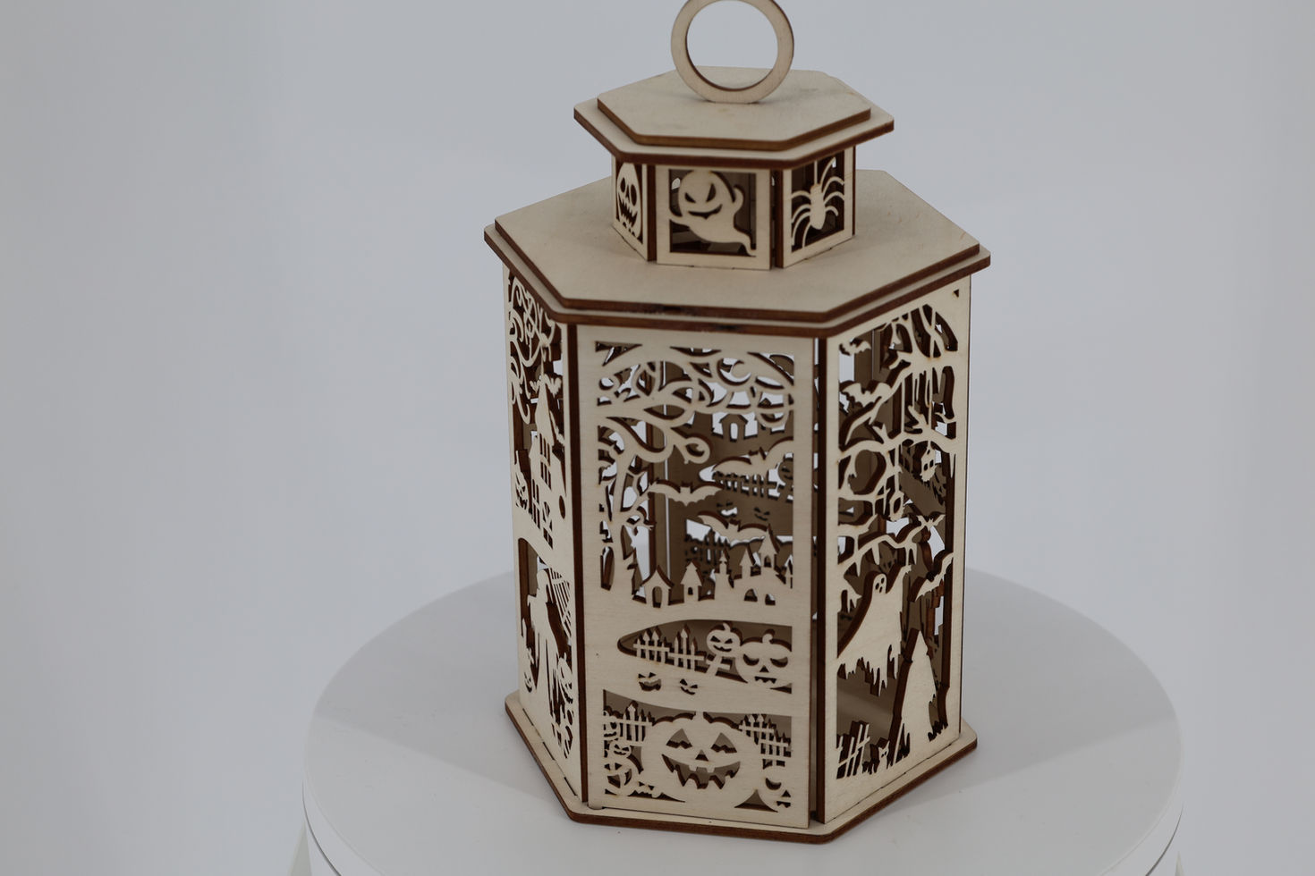 Unsere handgefertigte Laterne für Halloween ist das perfekte Accessoire, um Ihr Zuhause in eine gruselige Kulisse zu verwandeln. Jede Laterne wird mit Hilfe von Laser präzise aus Holz gefertigt, um sicherzustellen, dass jedes Detail perfekt zur Geltung kommt. Unsere Laterne ist aus hochwertigem Holz gefertigt und verfügt über ein stilvolles Halloween-Design, das die perfekte Atmosphäre für die Feiertage schafft. Die Laterne wird mit einer LED-Kerze geliefert, die für ein sanftes Leuchten sorgt und die perfekte Alternative zu traditionellen Kerzen darstellt. Bitte beachten Sie, dass nur LED-Kerzen für die Laterne verwendet werden sollten, um die Sicherheit zu gewährleisten. Diese handgefertigte Laterne ist ein Must-Have für Ihre Halloween-Dekoration und wird sicherlich alle Blicke auf sich ziehen.